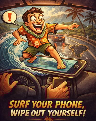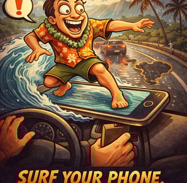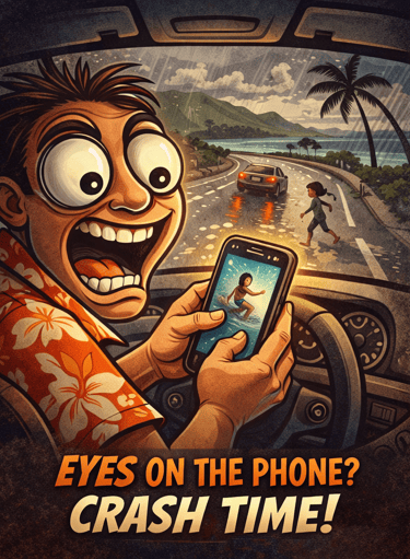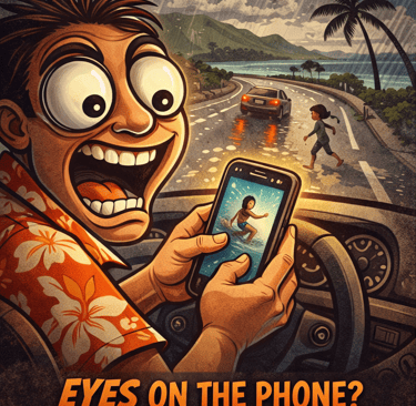 Driving while texting or surfing your phone isn’t multitasking — it’s gambling with lives. This post explains why distracted driving is so dangerous on Hawaiʻi roads, using humor, local reality, and aloha to remind us: the phone can wait.